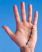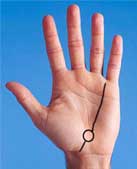 Ubicación: La Línea de la Salud comienza debajo del dedo anular y viaja hacia la Línea de la Vida.